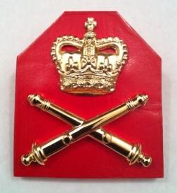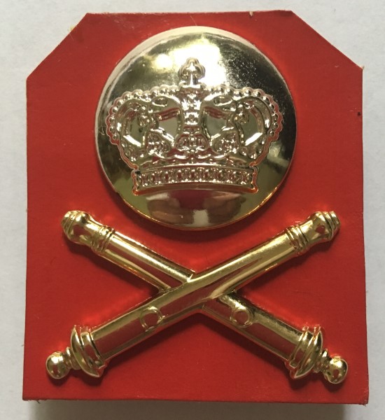 leather background is the traditional artillery color red, the crossed
